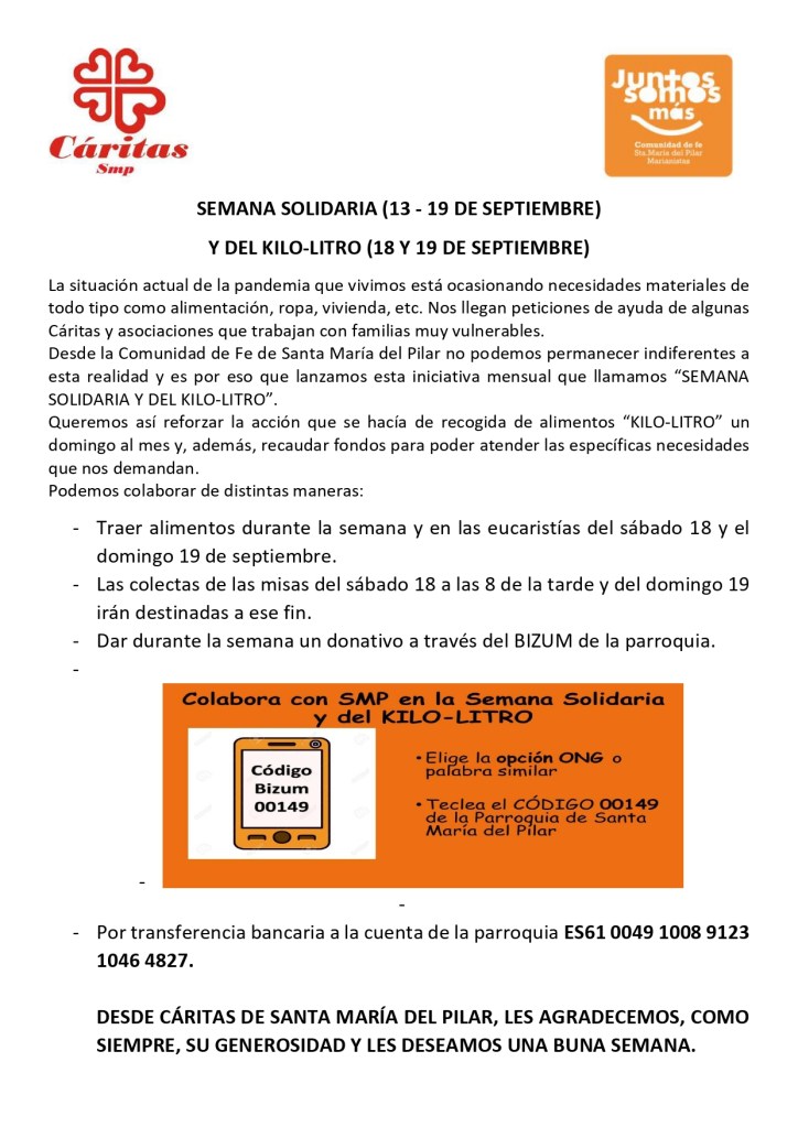 Semana Solidaria y del KILO-LITRO