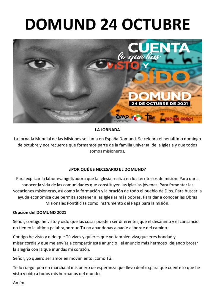 La colecta del fin de semana del 23-24 de octubre en Santa María del Pilar destinada al DOMUND ha sido de 5184 €. Desde Obras Misionales Pontificias y Santa María del Pilar os damos las gracias por vuestra generosidad.