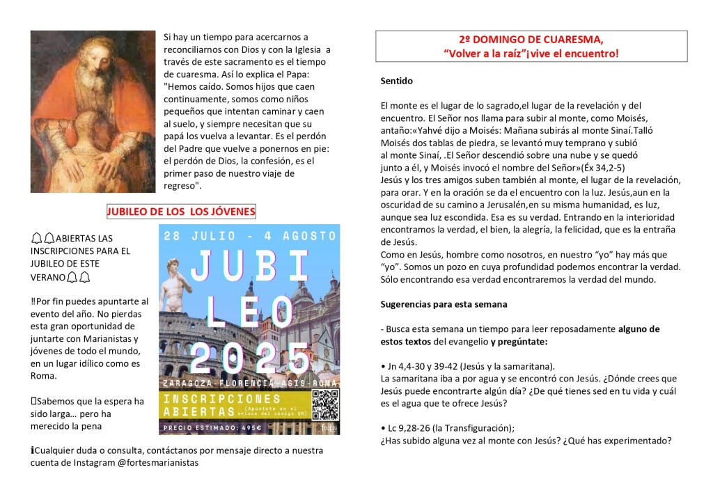Si hay un tiempo para acercarnos a reconciliarnos con Dios y con la Iglesia a través de este sacramento es el tiempo de cuaresma. Así lo explica el Papa: «Hemos caído. Somos hijos que caen continuamente, somos como niños pequeños que intentan caminar y caen al suelo, y siempre necesitan que su papá los vuelva a levantar. Es el perdón del Padre que vuelve a ponernos en pie: el perdón de Dios, la confesión, es el primer paso de nuestro viaje de regreso».